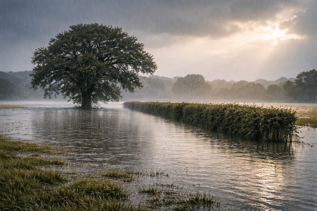 In Ireland. we are familiar with rain – itβs what gives us our beautiful and green countryside. But lately the rain has been constant!! And some of the fields are barely visible beneath the lying water. The ground is saturated & now we see only water, not the fields.
