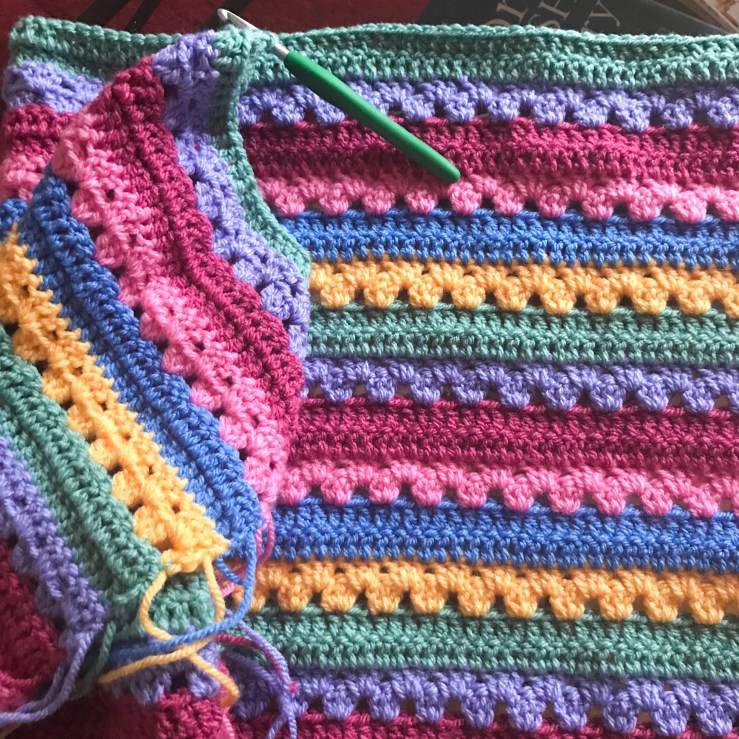 I still love to crochet and here is a multi coloured blanket on my hook at the moment