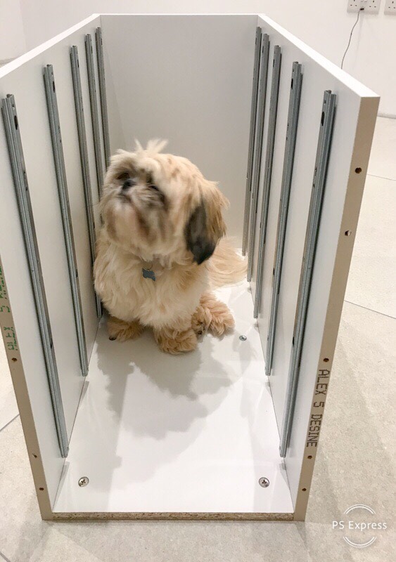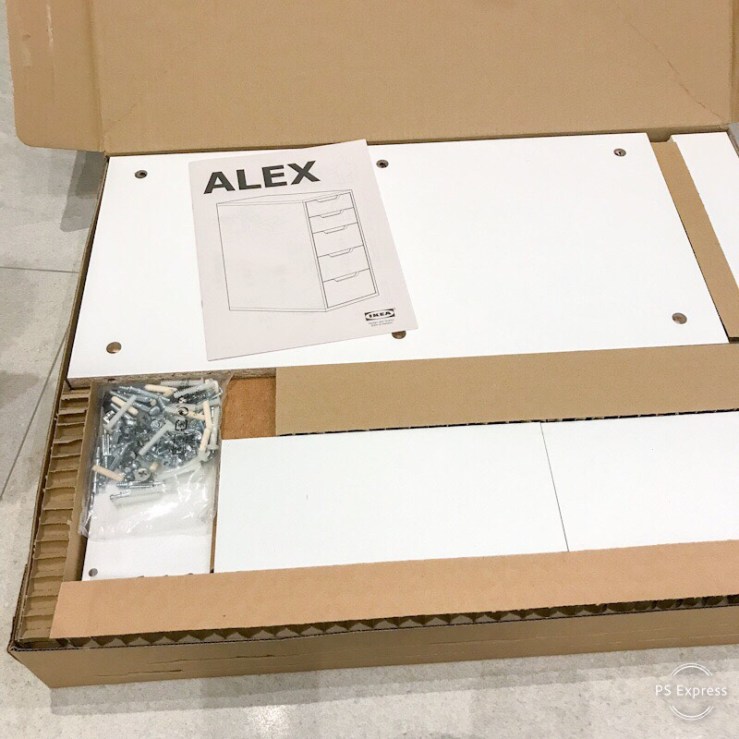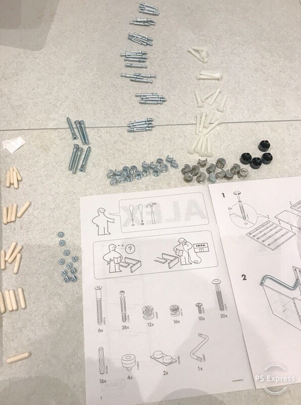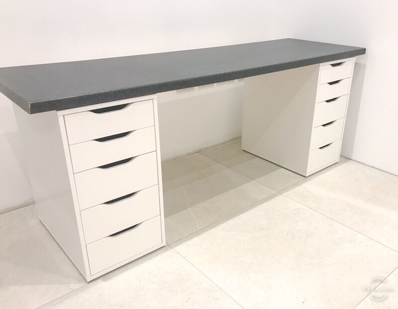 I have looked for inspiration and craft room ideas on Pinterest and YouTube for many months now so I knew the basics were going to be lots of Ikea units. The first thing I needed was a sturdy desk unit to hold my computer and sewing/embroidery machines. I kept my old kitchen counter top so I needed something to put it on. I settled upon 2 Alex units from Ikea. Yes, unfortunately Ikea Alex is a drawer unit and not a hunky handyman. Mmmm… sorry momentarily distracted.